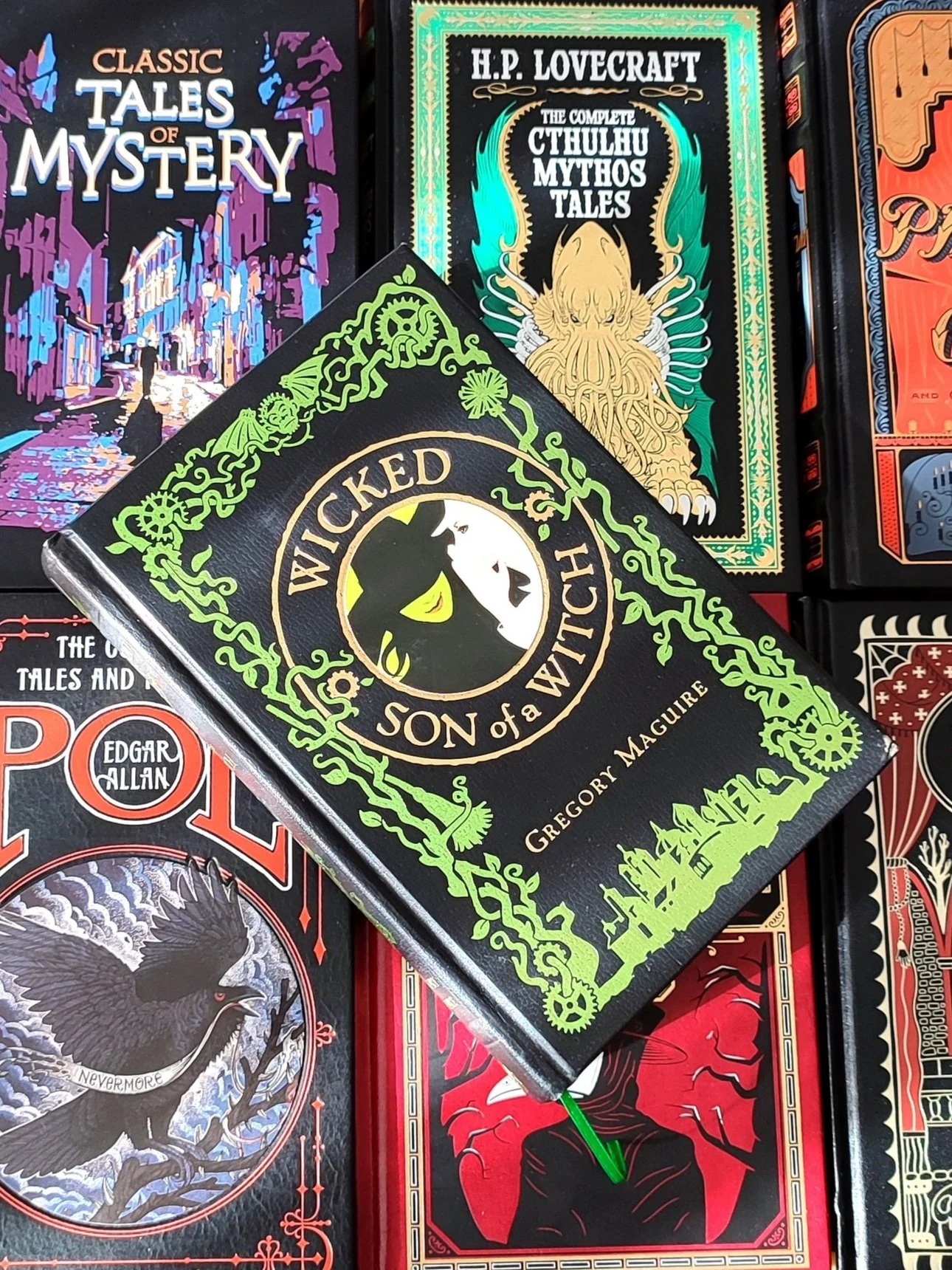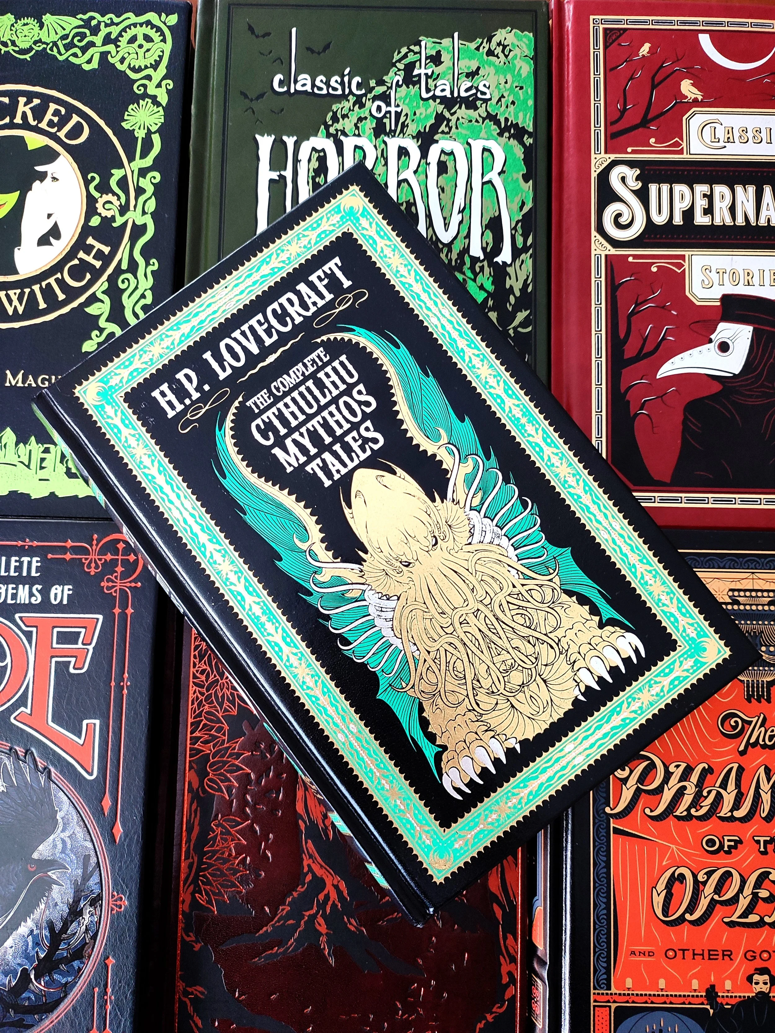 When trying to decide which Lovecraft edition to feature, I was faced with a heavy choice. While there were some that contained his entire body of works, and some that were perhaps more ghastly in their appearance, no other edition captured my attention as The Complete Cthulhu Mythos Tales from the Barnes and Noble Leatherbound Collection.